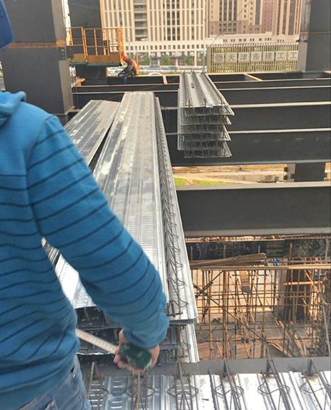 天津新八大里地區(qū)第六項目六合大廈項目,位于天津市津南區(qū)雙港鎮(zhèn),甲方單位為天津市建工工程總承包有限公司鋼結構工程分公司。杭州嘉奕達實業(yè)有限公司通過層層篩選,最終確定為該項目鋼筋桁架樓承板材料的供應商。該基部分材料為底部無焊點鋼筋桁架樓承板,我司深化設計后采用三種材料,分別是TD3-70/3-90/3-120,總供貨面積為50000平方米。