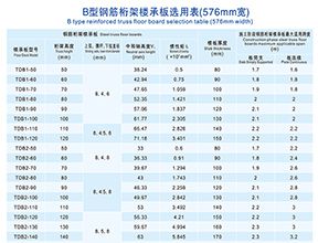 B型鋼筋桁架樓層板選用表…鋼筋桁架樓承板系統(tǒng)